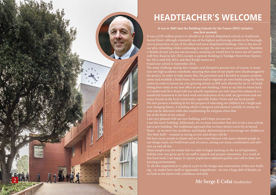 As Sacred Heart recently opened it's doors to the new building for the school to develop and create the leaders of tomorrow, the headteacher asked me if I was able to design a brochure for the event. Working each day until the early morning, I completed the brochure and exceeded expectations. 200+ copies of my work printed for the whole school and community to see, what a great feeling!